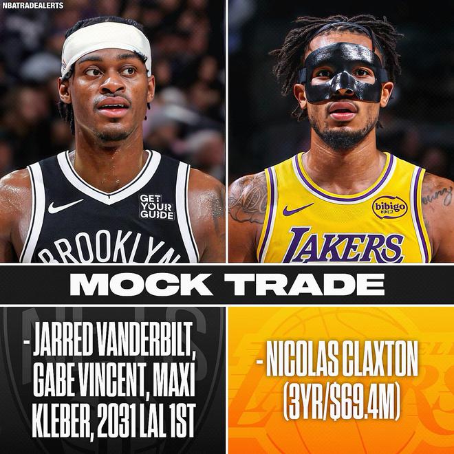 湖人送出范德彪+文森特+克莱伯+31首轮(3400万)得到克拉克斯顿(2500万)